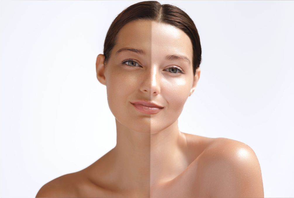 Our skin whitening treatment effectively targets, diminishes dark spots and pigmentation. It promotes an even skin tone and results in visibly brighter skin.